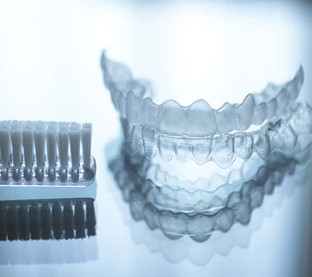 A. These aligners are discreet and effective. They also move teeth more quickly than traditional braces do. Aligners are removable, making it easy for patients to brush their teeth and floss effectively.